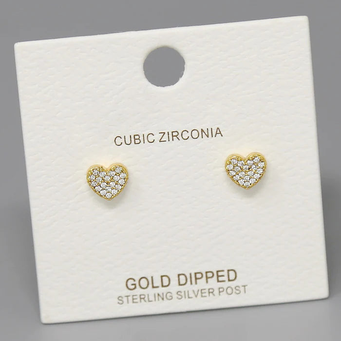 Heart CZ Pave Gold Dipped Stud Earrings