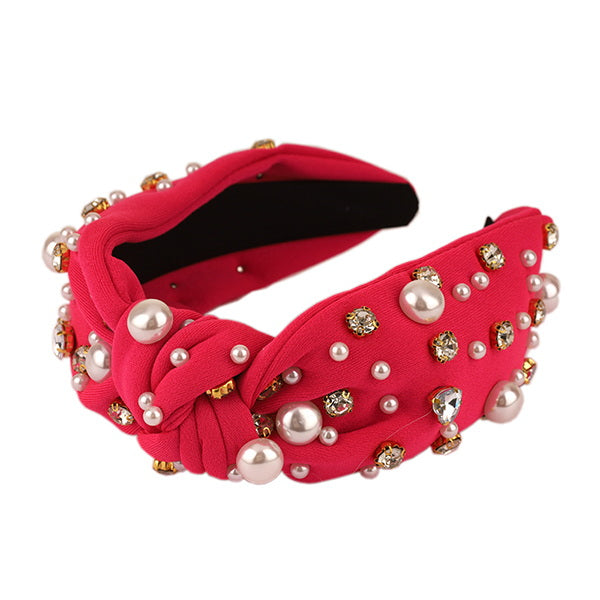 Rhinestone Pearl Embellished Knot Headband