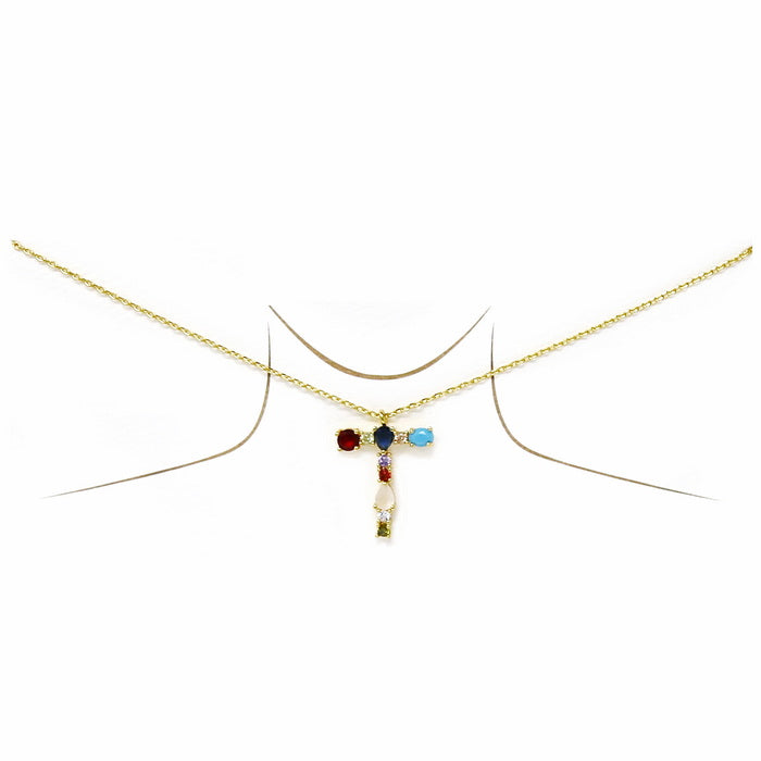T Initial Cubic Zirconia Pave Pendant Short Chain Necklace