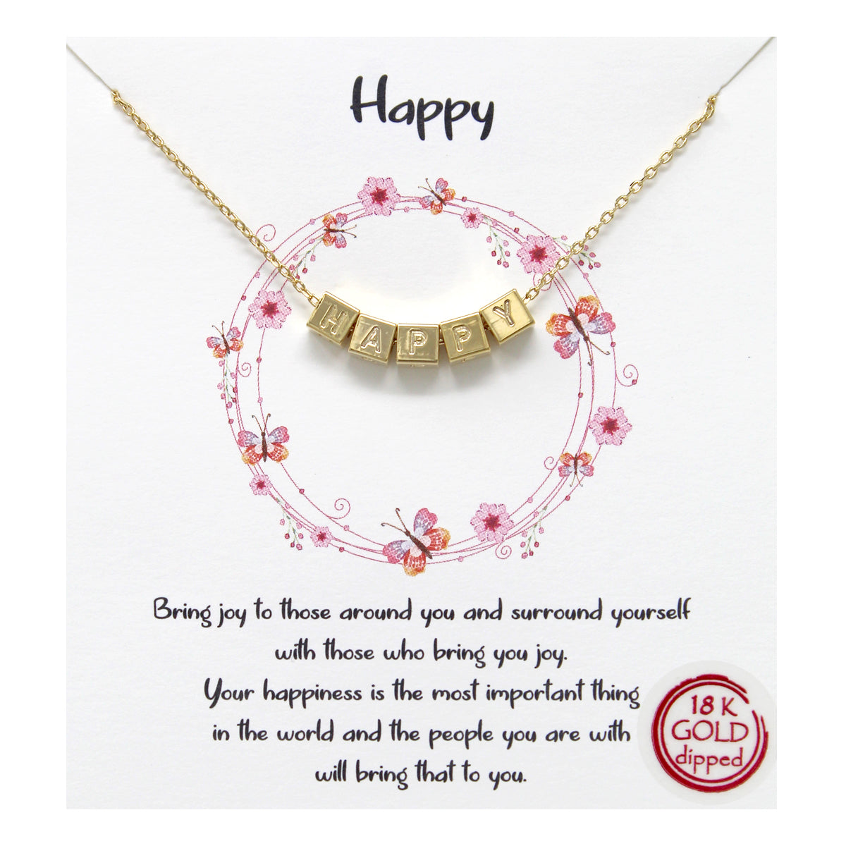 Tell Your Story: Happy Engraved Cube Pendant Simple Chain Necklace